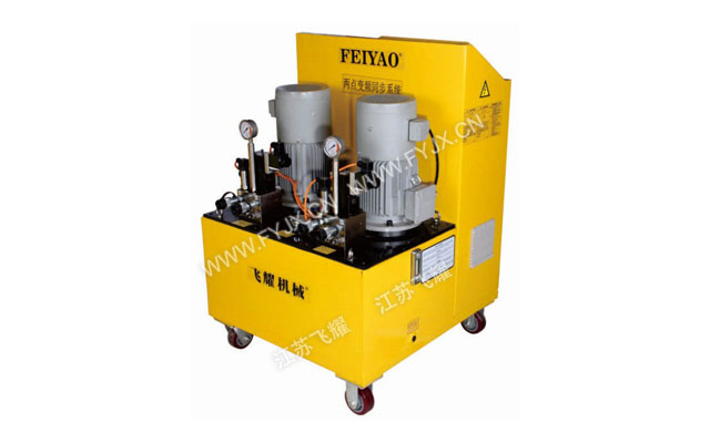 同步泵站配套單作用千斤頂使用時僅能實(shí)現(xiàn)千斤頂在頂升時的同步,千斤頂在下降時只能通過手動閥來調(diào)節(jié)同步,無法實(shí)現(xiàn)下降自動同步。