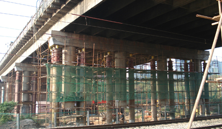 三、將橋墩接長外包混凝土。