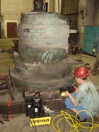 液壓扳手對(duì)水泥廠磨輥進(jìn)行緊固。